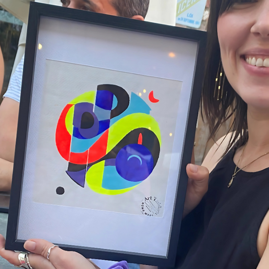 Pour donner vie à ce projet, j'ai suivi des formations pour digitaliser mes modèles et les transformer en pochoirs. J'ai alors conçu plusieurs modèles, que j'ai pu tester lors d'ateliers créatifs. Le succès a été immédiat, et ce concept a évolué pour inclure d'autres sujets, allant du portrait à l'abstrait, et même des modèles adaptés aux enfants.