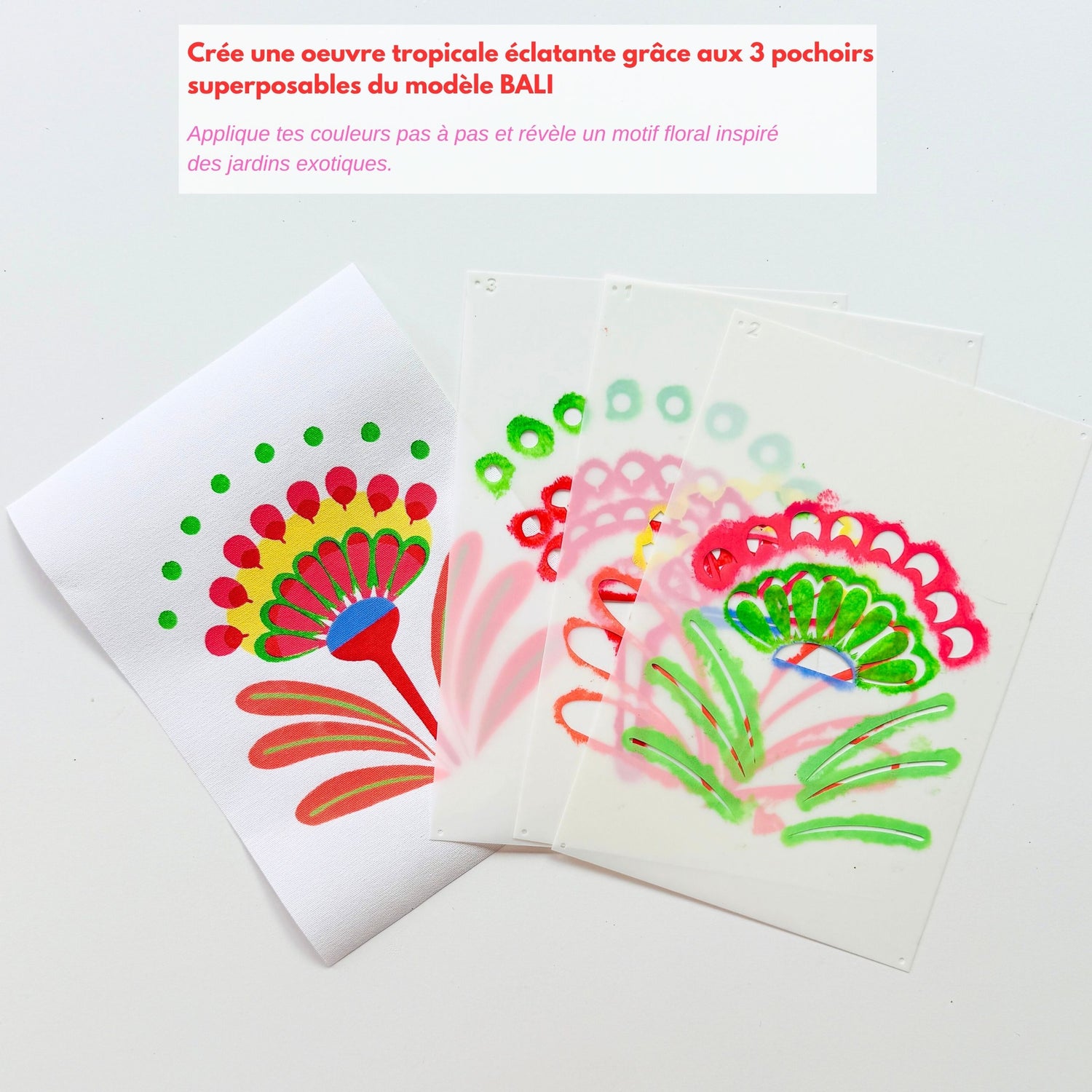 🌼 Pochoir créatif "Flowers Bali" 3 pochoirs superposables pour une fleur graphique et colorée