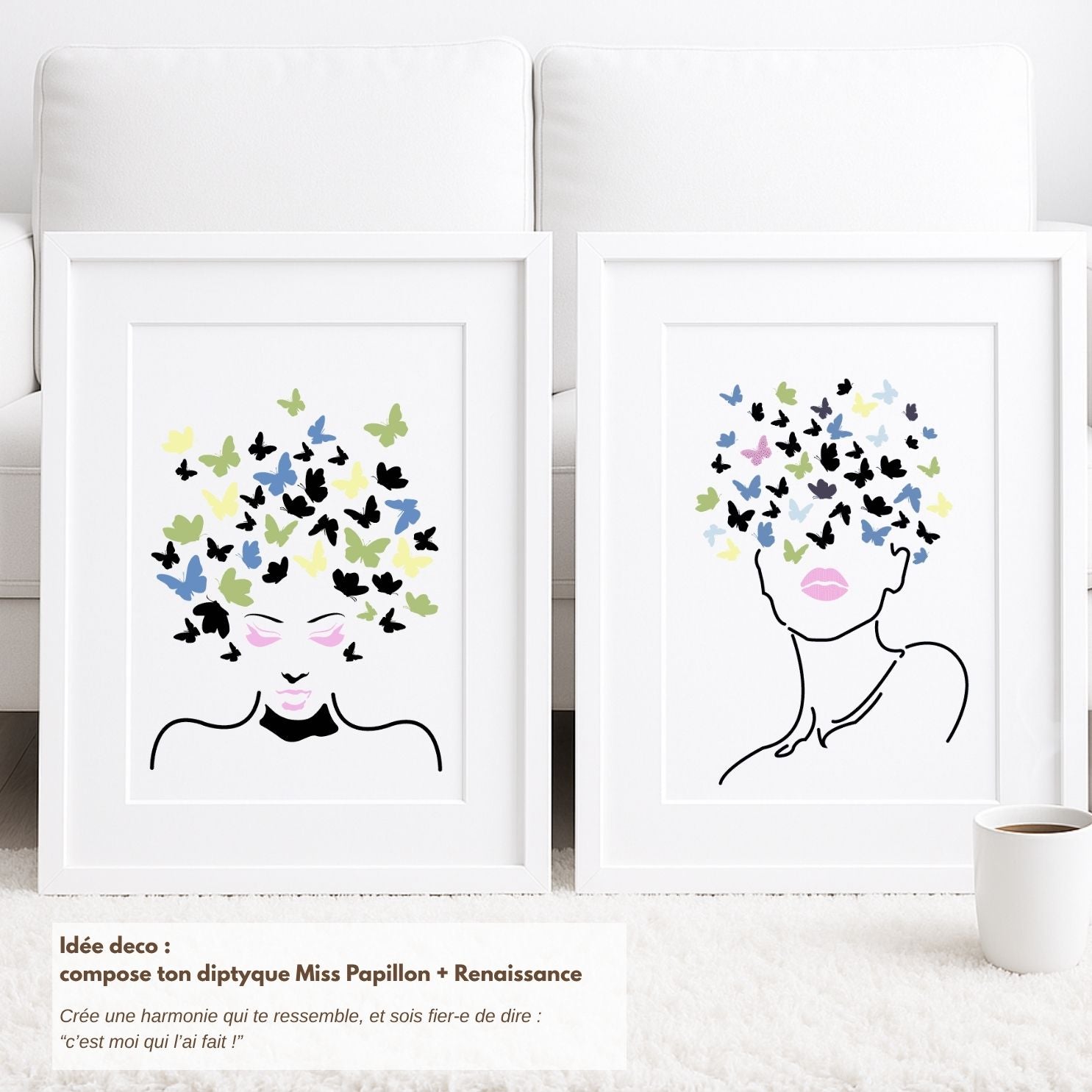 🌼 Pochoir artistique "Miss Papillon" Visage & papillons Panash Art